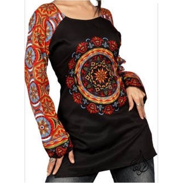 Beautiful Women Tops Indian Kurti Tunic Kurta Sale Mandala Black Christmas Bust Size 48 Walmart Com
